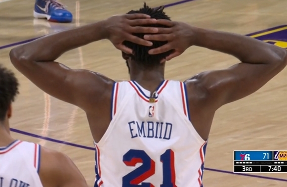 这姿势有点搞笑🤣恩比德诡异姿势造成拉拉维亚投篮犯规