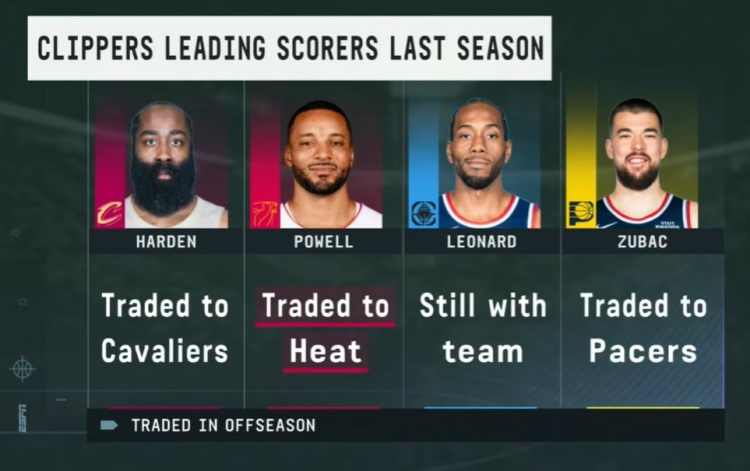 开云博彩-快船上季四人组只剩小卡:哈登赴骑士 大祖去步行者 鲍威尔去热火